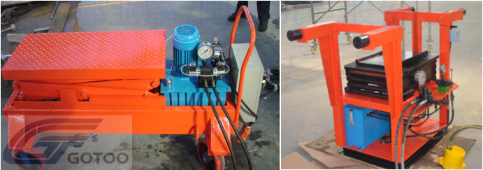 The equipment is mainly composed of a hydraulic pump station, a mobile trolley, a scissor fork lifting mechanism and an electric control box.
